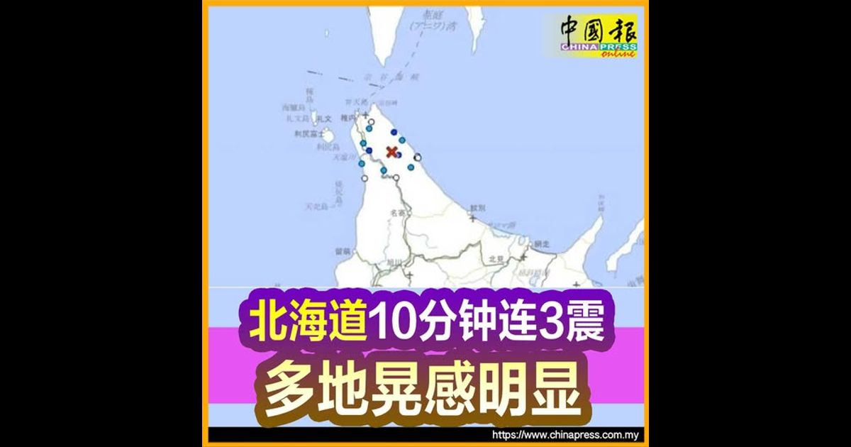 日本气象厅地震资讯显示,北海道宗谷地方南部接连发生3起地震。当地时间早上9时48分起至9时58分,同一震源10分钟内发生3起“极浅层”有感地震,依序为4.1级、5.0级和4.3级。
