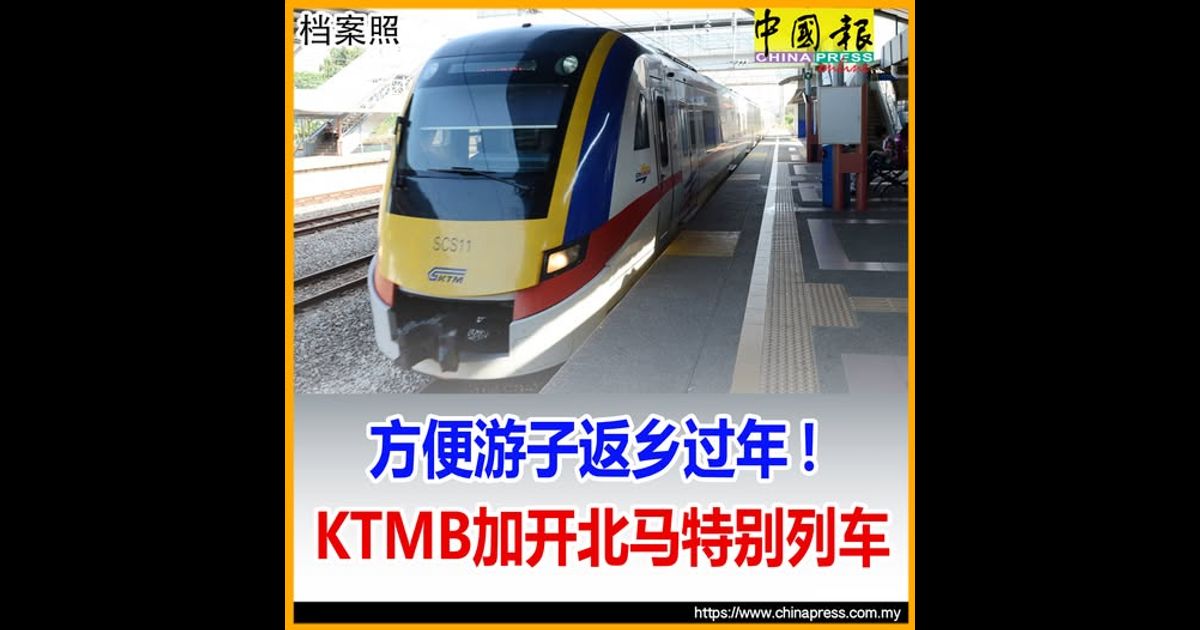 (吉隆坡12日讯)马来亚铁道公司(KTMB)配合即临的农历新年,在2月13、14、16和17日,推出农历新年“观光”(Excursion)特别列车服务,以增加往返吉隆坡中环车站(KL Sentral)和玻璃市巴东勿刹的火车班次。