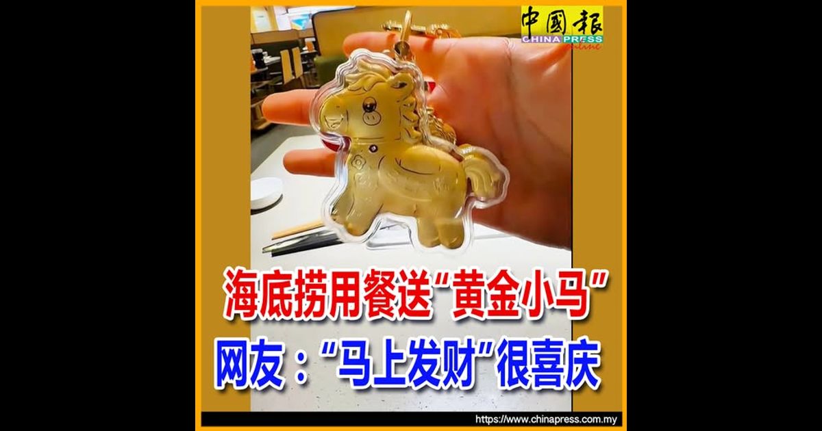 (北京12日综合电)中国民众发视频分享称,他们去海底捞门店就餐后,免费领取了一个“黄金小马”的挂件。