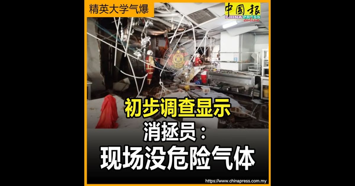 (吉隆坡12日讯)精英大学爆炸案;据吉隆坡消拯员初步调查显示,现场没有遗留危险气体,情况已受到控制,惟肇祸原因有待详查。