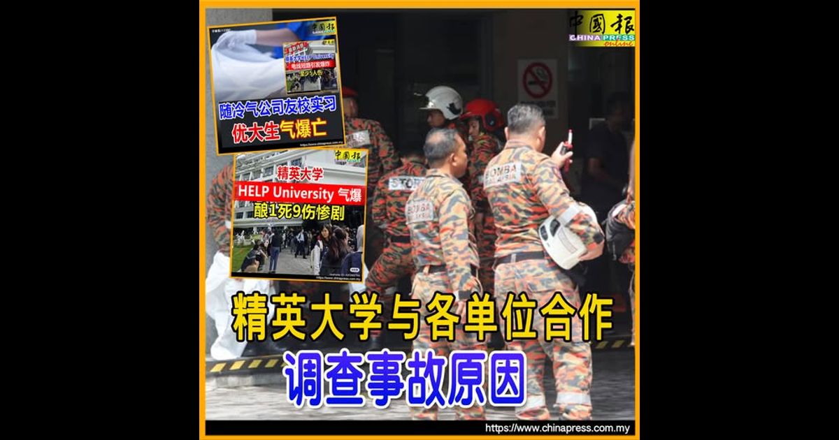 (吉隆坡12日讯)精英大学(HELP University)气爆事故造成1死9伤后,该大学正与有关部门、楼宇业主和物业管理公司紧密合作,调查事故起因,同时也会关闭相关教学楼,直至调查结束。
