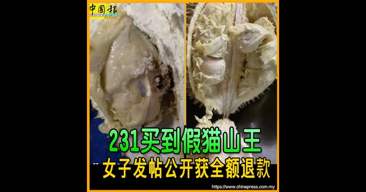 (吉隆坡12日讯)女子花费231令吉购买5粒猫山王榴梿,岂料开榴梿后却发现果肉呈淡黄色,部分果肉甚至是有着疑似发霉状况,当下意识到自己疑似受骗。