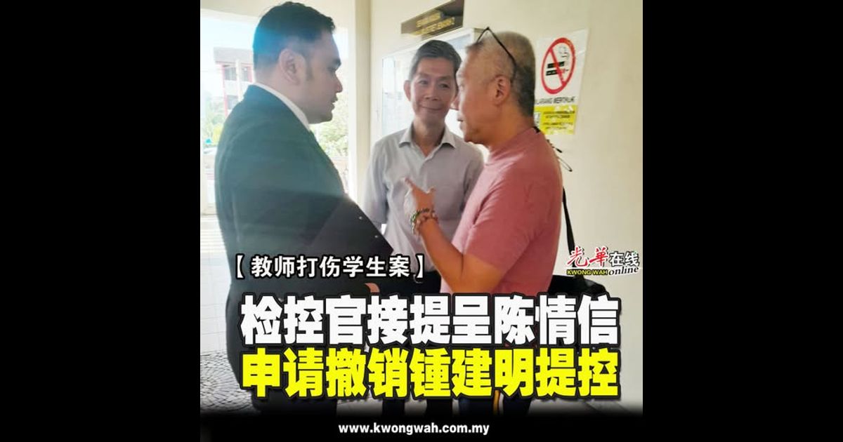 孔圣庙中华中学2名教师涉嫌以藤条鞭打致伤学生案,其中一名被告锺建明(译音,59岁)周二(13日)在推事庭过堂,其代表律师向检控官提呈陈情信,申请撤销对其当事人的提控。
