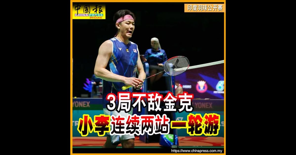 (新德里13日综合电)2026年印度羽球公开赛(超级750赛)今日挥拍。在男单首圈焦点战,大马名将李梓嘉苦战三局,以1比2不敌丹麦好手金克,继今年首站大马赛后,再次上演一轮游!