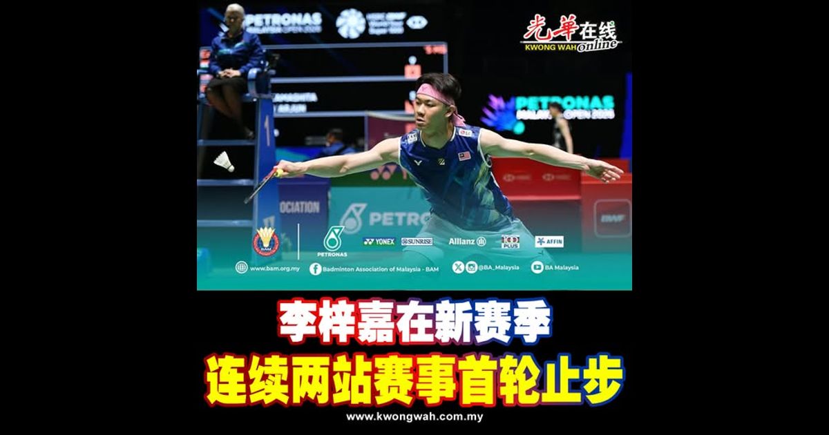 大马职业羽球男单名将李梓嘉在新赛季连续两站赛事首轮止步。