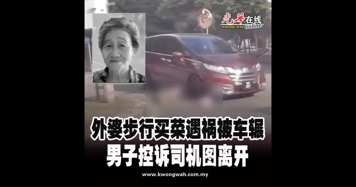 一名男子在社交媒体脸书发文控诉,外婆如常步行前往巴刹买菜途中,遭一辆轿车撞到和辗过。