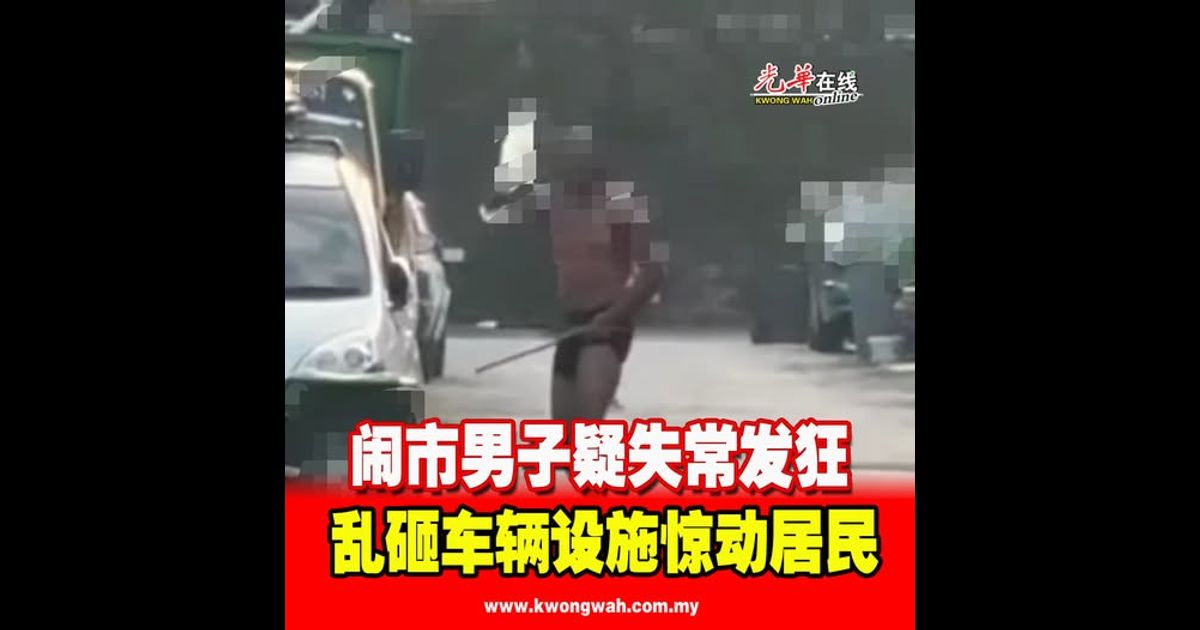 一名疑精神失常的男子闹市发飙,四处砸毁车辆及公共设施,惊动附近居民,所幸未造成人命伤亡。
