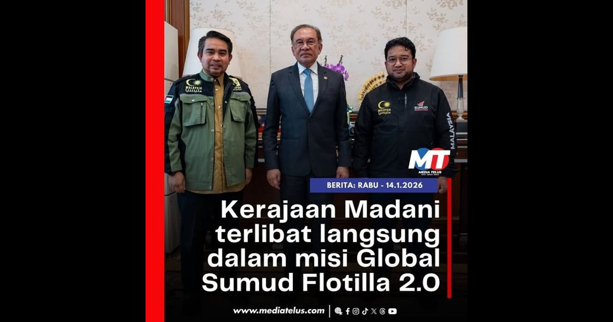 KUALA LUMPUR 14 Jan – Kerajaan Madani akan terlibat secara langsung dalam misi kemanusiaan Global Sumud Flotilla 2.0 yang dijangka disertai lebih 80 negara dari seluruh dunia.