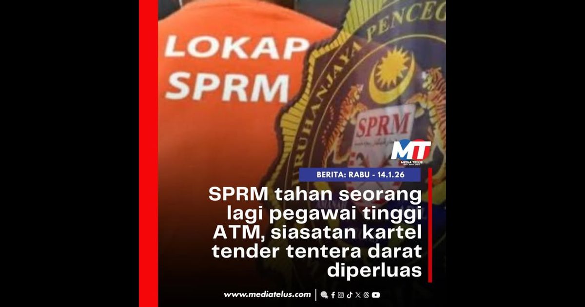 KUALA LUMPUR 14 Jan – Suruhanjaya Pencegahan Rasuah Malaysia (SPRM) menahan seorang lagi pegawai tinggi Angkatan Tentera Malaysia (ATM) bagi membantu siasatan berkaitan kartel projek tender perolehan Tentera Darat.