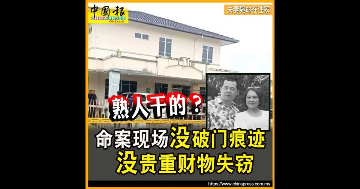 相关新闻>>夫妻毙命在住家|2死者身上皆有严重伤痕 警谋杀案处理 全力缉凶