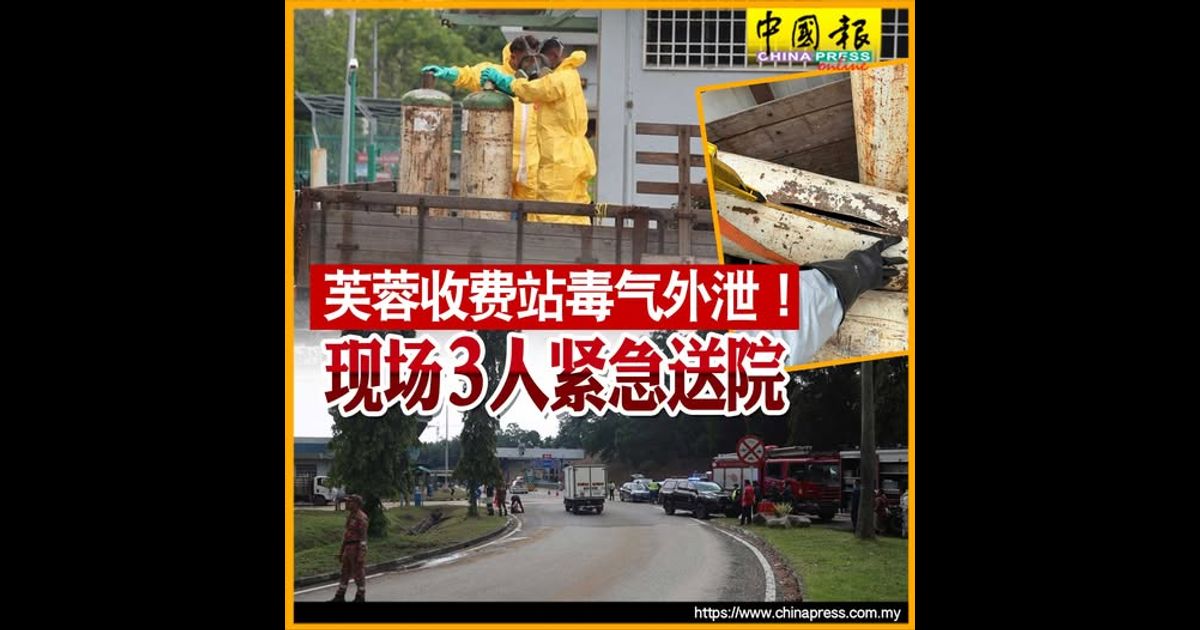 (芙蓉15日讯)芙蓉收费站今午发生严重化学品泄漏事故,3人因吸入有毒氨气蒙受不同程度伤害,消拯员直接封锁现场,导致现场紧张气氛升级。