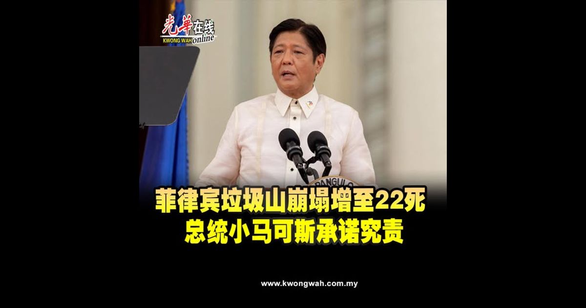 菲律宾中部一处垃圾掩埋场8日发生崩塌事故,当地媒体报道罹难者已增至22人,总统小马可斯15日对此表示哀悼,并强调将彻查原因并向相关部门究责。
