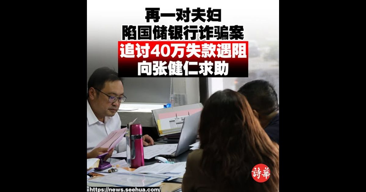 再一对夫妇陷国储银行诈骗案 追讨40万失款遇阻向张健仁求助