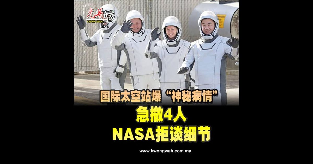 国际太空站(ISS)运作超过25年,首度发生因组员健康问题而执行的“医疗撤离”任务。法新社报道,搭载4名太空人的SpaceX“龙飞船”已于14日深夜脱离太空站,预计周四溅落地球。美国航太总署(NASA)证实,这是为了让1名出现健康问题的太空人接受治疗,但罕见地拒绝透露“是谁生病”或“生了什么病”。