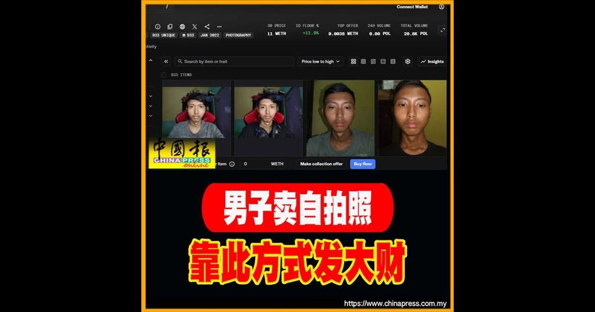 (耶加达16日综合电)印尼一名大学生葛扎利(Ghozali Ghozalu),从2017年起每天拍下一张“自拍照”,一直到2021年近5年时间共累积933张照片,将这些自拍照做成影片,并把此系列命名为《Ghozali Everyday》,并放上NFT最大交易市场“OpenSea”贩售,最初以每张0.001以太币(约13.4令吉)贩售。