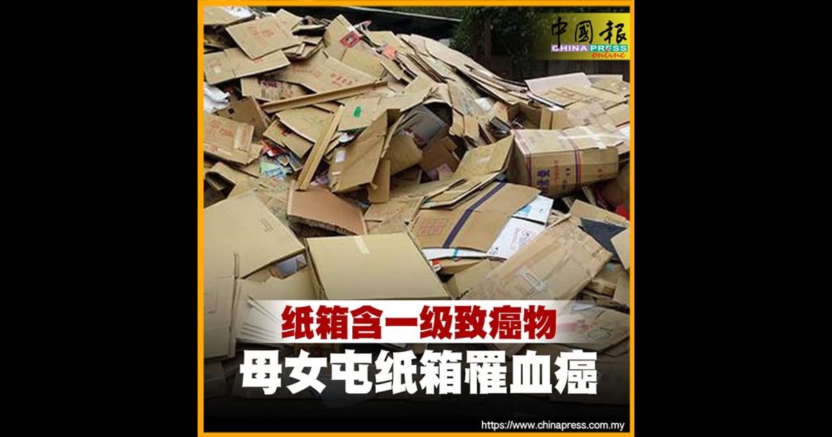台湾营养师黄品瑄早前于面子书分享,曾有一对母女于家中长期囤放劣质纸箱,结果两人一同罹患白血病。