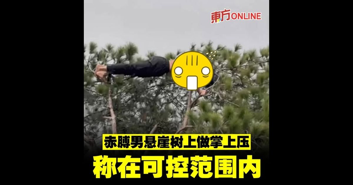 (重庆16日讯)中国重庆南山虚灵峰出现令人瞠目结舌的一幕,一名上身赤裸的男子竟在悬崖峭壁的树上进行俯卧撑。