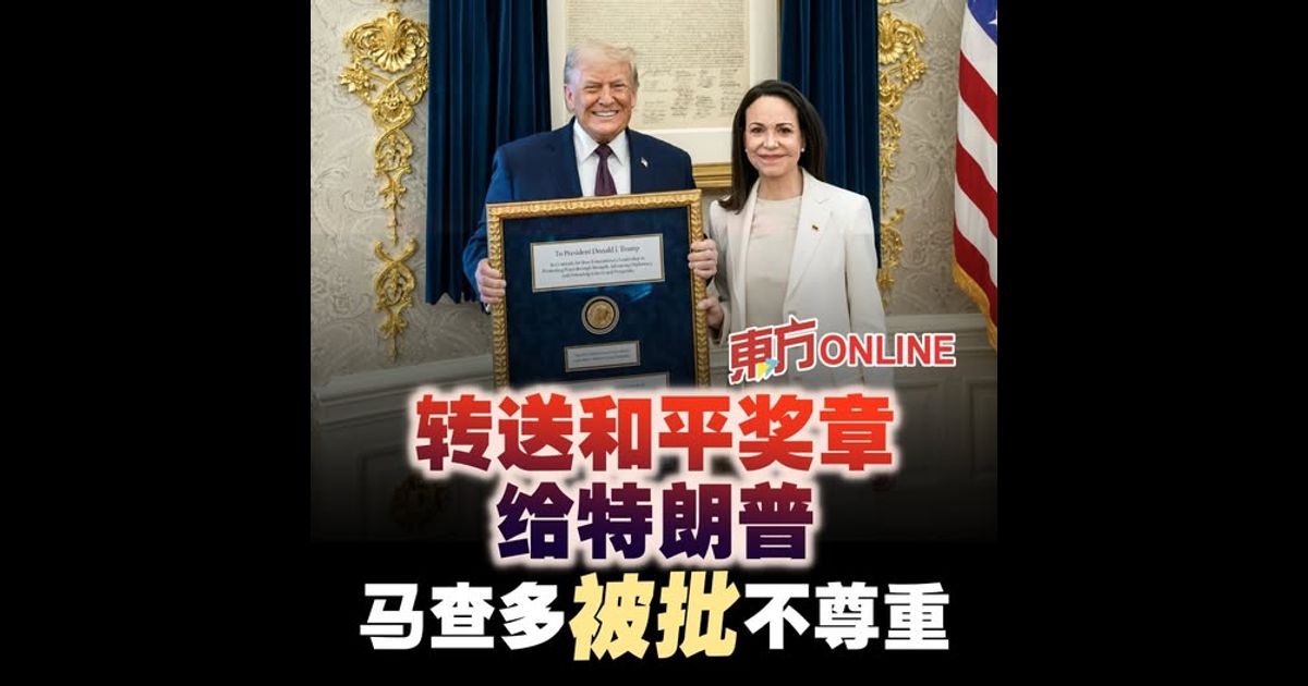 台湾中央社报导,马查多周四前往白宫,将她的诺贝尔和平奖奖章献予特朗普,并在个人社交媒体转发她献奖给特朗普的合照。奖章裱框里的献词写著:“献给特朗普总统,感谢您在以实力促进和平、推进外交以及捍卫自由与繁荣方面展现的卓越领导力。”