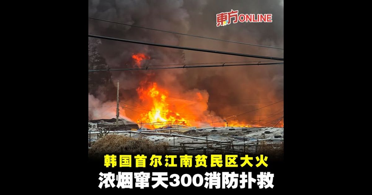 (首尔16日讯)韩国首尔江南区号称全国最富裕,与区内贫困的九龙村棚户形成强烈对比。被称为当地“最后一座贫民窟”的九龙村在今日(16日)清晨时分突然发生大火,当局紧急出动近300人、85辆消防车到场扑救,并疏散近50人。