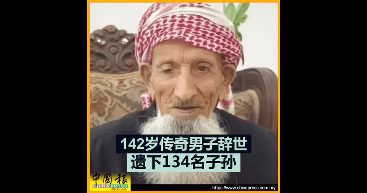 (利雅得16日综合电)沙地阿拉伯一名最长寿人瑞近日离世,享嵩寿142岁。这名自称出生于1884年的长者纳赛尔,于1月8日在利雅德逝世,生前见证了沙国开国至今的王朝更迭,遗下多达134名子孙。