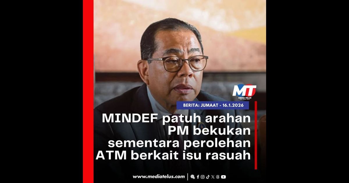 KUALA LUMPUR 16 Jan – Kementerian Pertahanan (MINDEF) akur dengan arahan Perdana Menteri, Datuk Seri Anwar Ibrahim berhubung pembekuan sementara keputusan perolehan Angkatan Tentera Malaysia (ATM) yang dikaitkan dengan isu rasuah.
