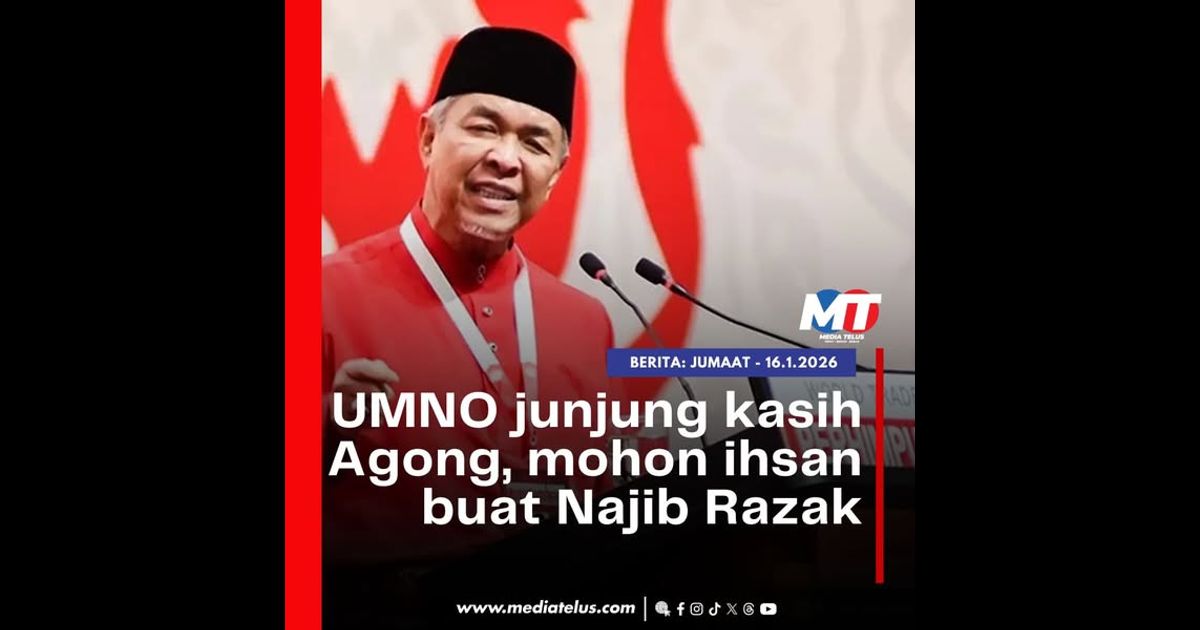 KUALA LUMPUR 16 Jan – UMNO merafak sembah menjunjung kasih kepada Yang di-Pertuan Agong, Sultan Ibrahim agar berkenan memberikan ihsan terhadap Datuk Seri Najib Razak bagi membolehkan bekas perdana menteri itu memperoleh apa jua pertimbangan dan keringanan untuk kembali ke pangkuan keluarga serta UMNO.