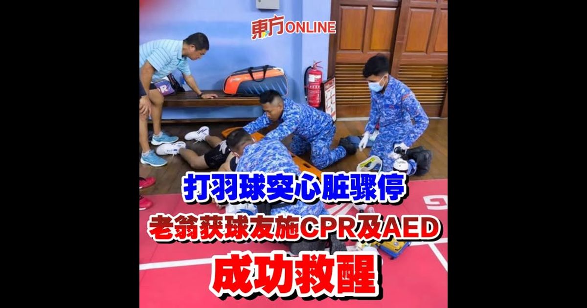 (槟城17日讯)一名66岁华裔老翁在羽球馆打球后突发心脏骤停,所幸在场者及时为老翁进行心肺复苏(CPR)及自动体外除颤器(AED),救回一命。