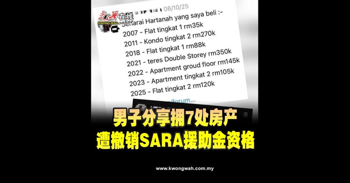 男子在社媒分享自己拥有7间房产,同时每年领取共1900令吉的STR援助金,如今遭财政部撤销领取慈悯基本援助金(SARA)及慈悯援助金(STR)资格。