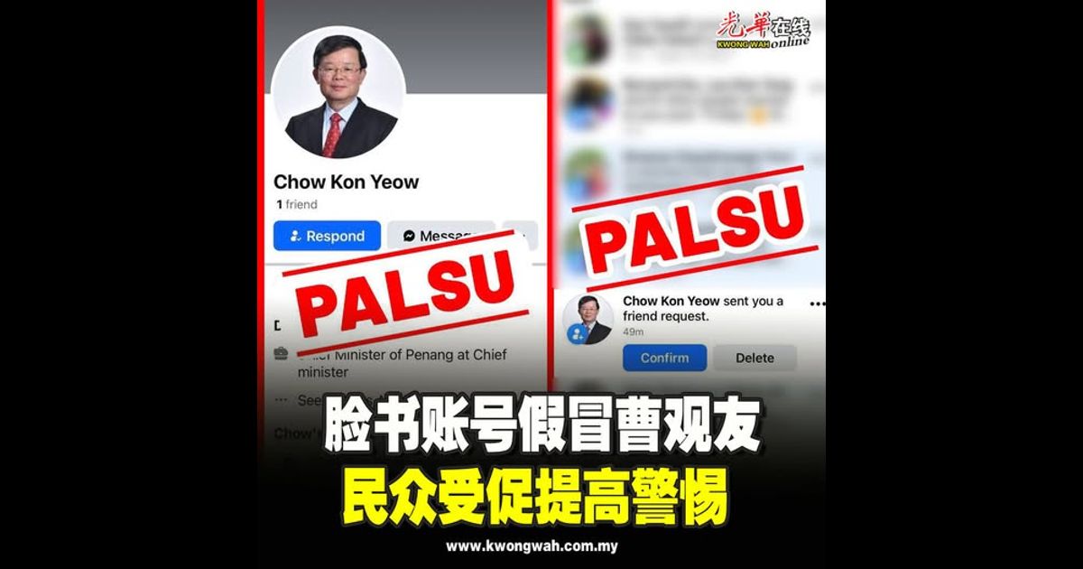 近日出现假冒槟州首席部长曹观友的脸书账号,民众受促勿受骗。