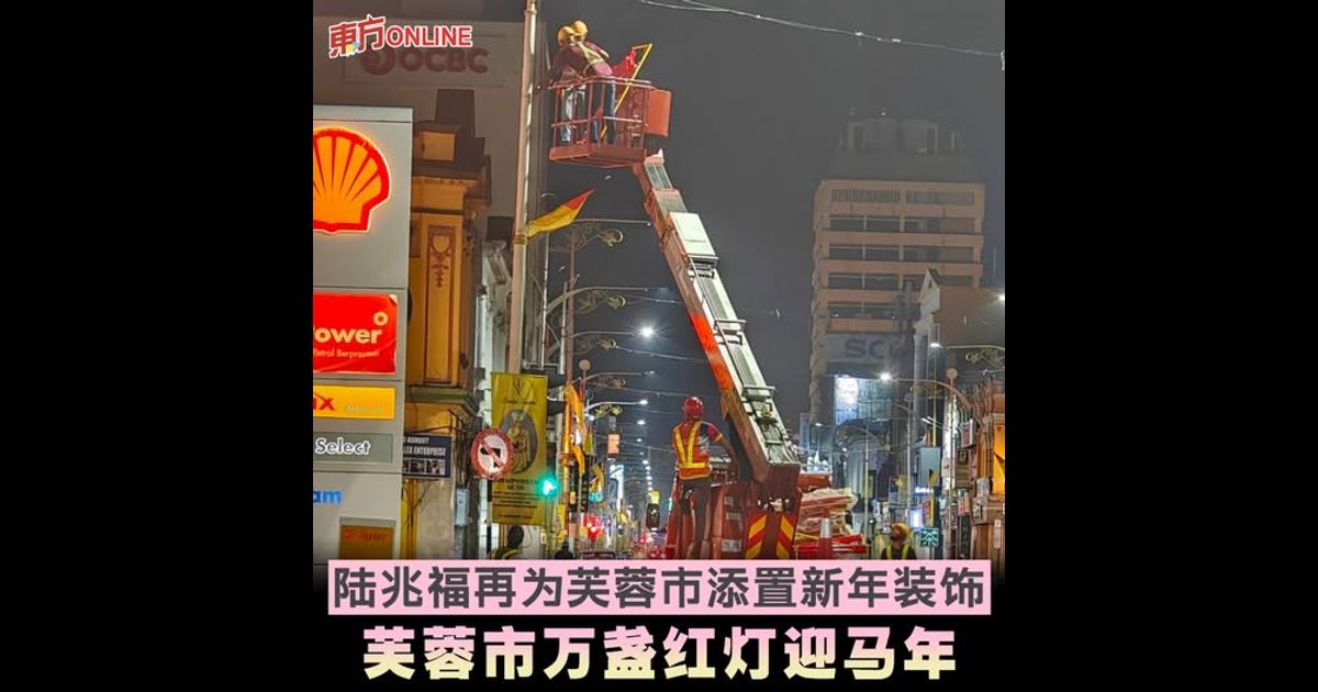 (芙蓉17日讯)配合马年农历新年的到来,交通部长兼芙蓉国会议员陆兆福办公室今年再度为芙蓉市增添节庆色彩;如今已动工,大红灯笼高高挂,洋溢喜气洋洋气氛!