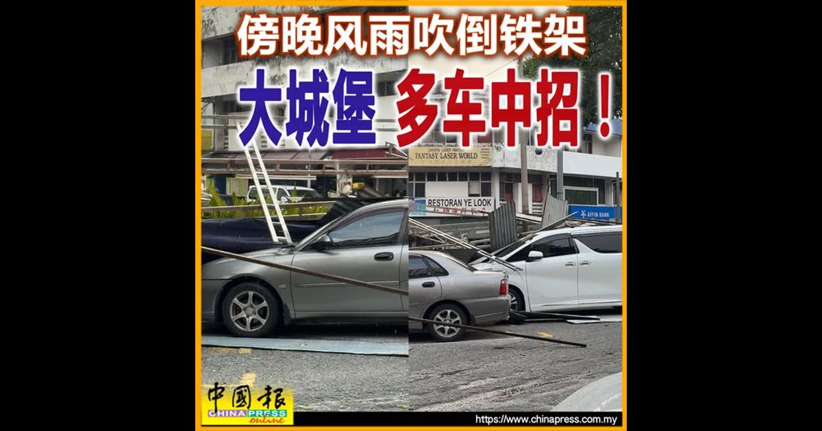 (吉隆坡18日讯)傍晚的一场风雨,吹倒路旁的铁架,导致数辆停泊在该处的车辆受损,被压凹或刮花!