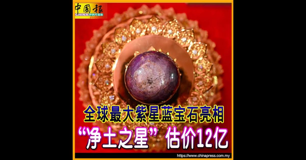 (科伦坡18日综合电)美联社报导,斯里兰卡宝石商周六(17日)在首都科伦坡公开展示一颗号称“全球最大”的天然紫星蓝宝石。这颗重达3563克拉的稀世珍宝,被命名为“净土之星”,估计市场价值至少高达3亿美元(约12.1亿令吉)。
