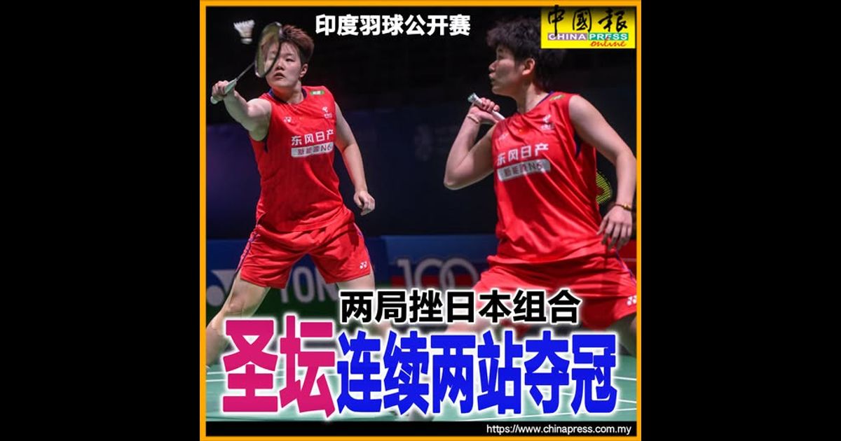 (印度.新德里18日综合电)中国世界第一“圣坛组合”刘圣书与谭宁夺下印度羽球公开赛女双冠军,赢得新赛季二连冠!