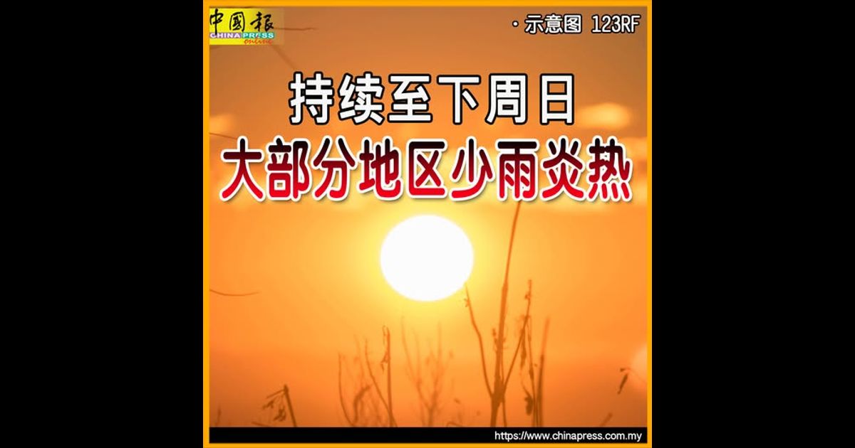 (吉隆坡18日讯)气象局预测,全国大部分地区将出现炎热、降雨偏少的干燥天气,尤其是西马半岛北部,这情况料持续至下周日(25日)。