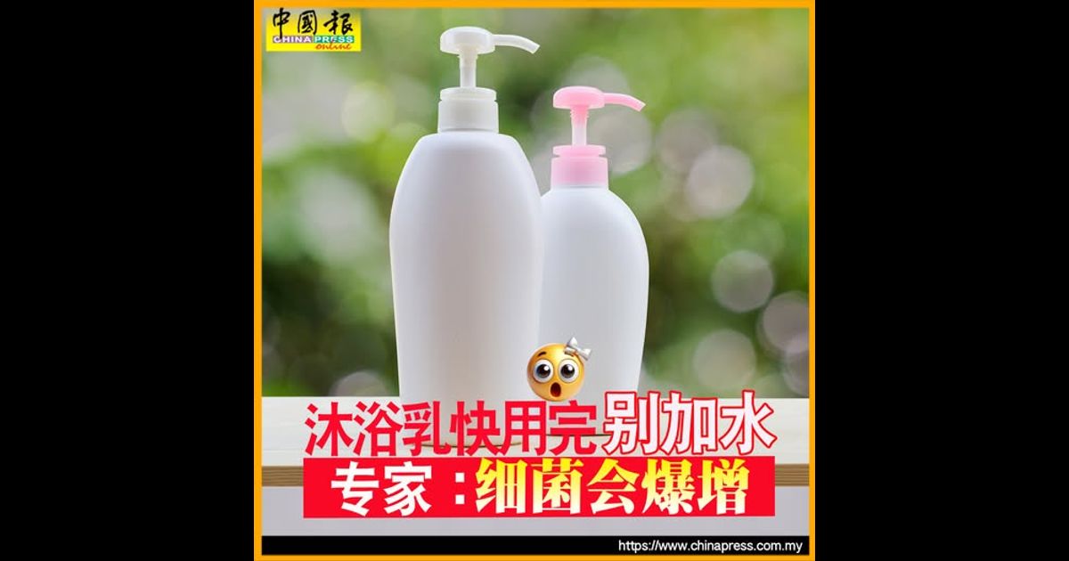 (台北18日综合电)许多人为了节省,常在沐浴乳或洗发精快用完时,习惯加入自来水摇一摇继续使用,认为这样不浪费、又能省钱。不过专家严正提醒,这样的做法其实暗藏健康风险。