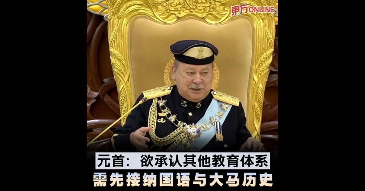 (吉隆坡19日讯)国家元首苏丹依布拉欣指出,任何关于承认其他教育体系的提议,都需接受马来语与马来西亚历史。