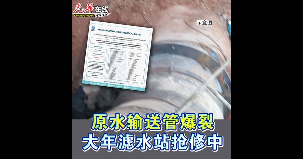 由于原水输送管突然爆裂,双溪大年滤水站减缓运作,以进行紧急抢修。
