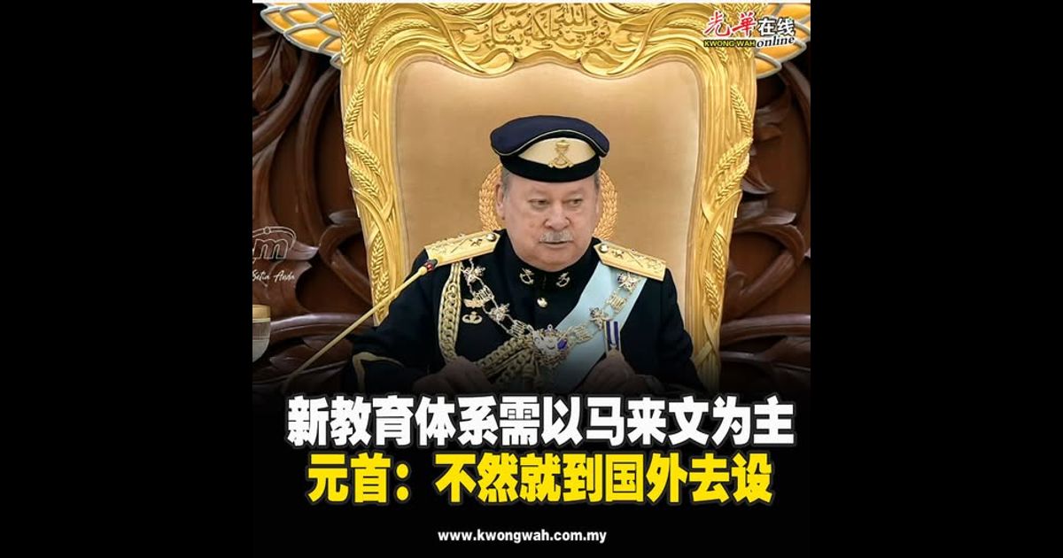 在提到要巩固教育体系时,陛下称:“作为肩负国家建设丶身份认同和国家未来的重任,若要增设教育系统,它必须符合国家教育政策,更必须以马来文为主,因为它是官方语言。”