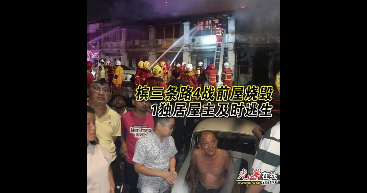 这起火患周日(18日)晚9时30分发生,据知,火势疑从门牌101号的老屋开始燃起,独居的屋主黄春福当时准备睡觉,幸及发现老屋失火后急忙逃生。