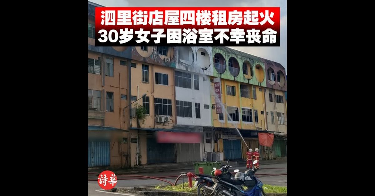 (泗里街19日讯)泗里街旧回教堂路一排4层楼单位店屋租房于昨日傍晚发生夺命火患,一名30岁友族女子受困浴室,经医护人员赶抵抢救不果后,不幸罹难。
