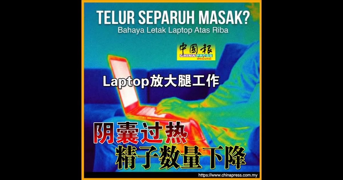 (吉隆坡19日讯)大马公共卫生专页提醒,习惯将笔记本电脑放在腿上工作或玩游戏的人士,尤其是男性,若长期将发热的笔记本电脑放在腿上,将导致精子数量下降!
