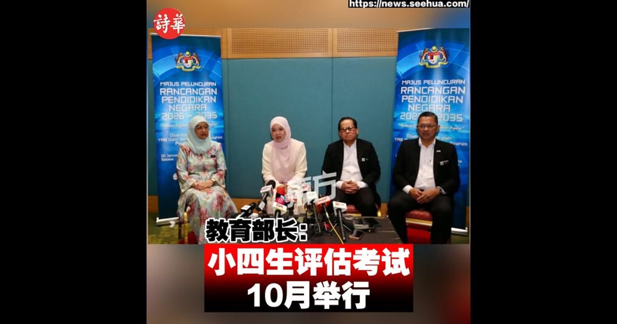 (布城20日讯)教育部长法迪娜表示,小学四年级学生的评估考试将落在今年10月份。