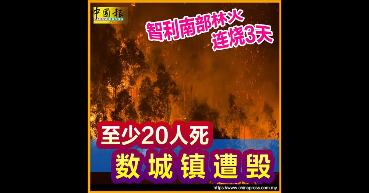 (圣地亚哥20日综合电)在南半球夏季气温炎热和强风助长下,智利南部林火延烧周一进入第3天,已造成20人丧生并摧毁数座城镇。