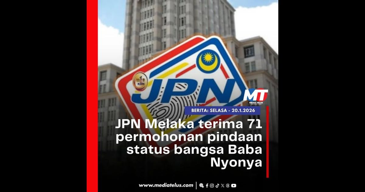 MELAKA 20 Jan – Jabatan Pendaftaran Negara (JPN) Negeri Melaka menerima kira-kira 71 permohonan berkaitan pindaan status bangsa kepada Baba Nyonya pada kad pengenalan setakat ini.