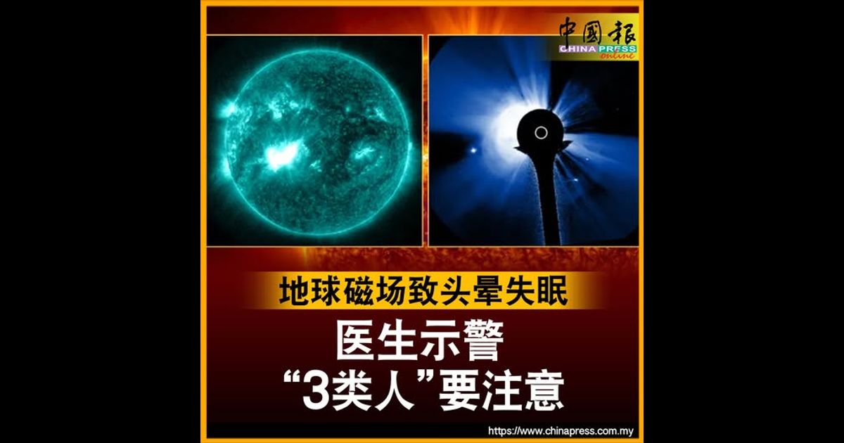 (台北21日综合电)台湾中央气象署太空天气作业办公室指出,自周二(20日)凌晨2时地球磁场扰动指数急速上升,将持续影响36小时,最大规模恐达到剧烈(G5)等级,期间可能会出现通讯异常、定位误差等情况,医生张家铭也提醒,太阳磁暴还会影响人类健康,可能会导致失眠、血压上升、心跳加快,尤其3类高风险族群要注意。