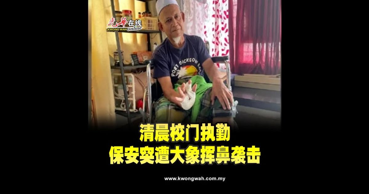 柔佛哥打丁宜斯里柏拉尼城国小(SK Perani)一名保安,周二(20日)清晨在校门前遭一头野象袭击,险遭踩踏丧命。