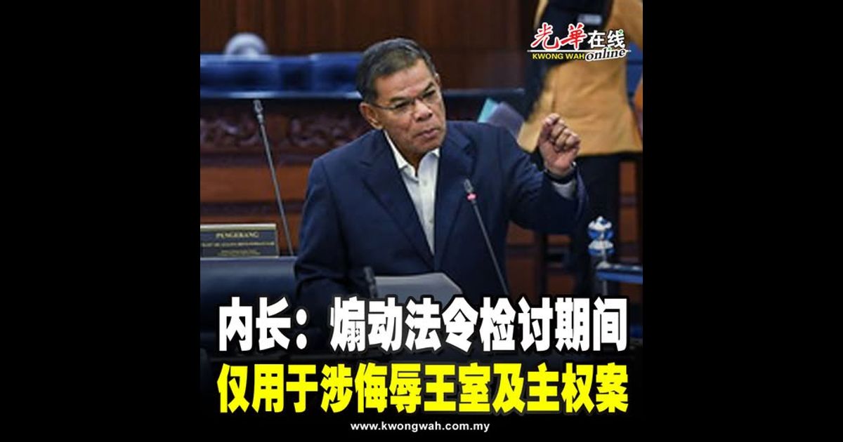 内政部长拿督斯里赛夫丁纳苏申强调,尽管有检讨煽动法令的承诺,但在检讨期间只会在涉及侮辱王室及危害国家主权的案件上才援引该法令,以维护公共秩序及国家安全。