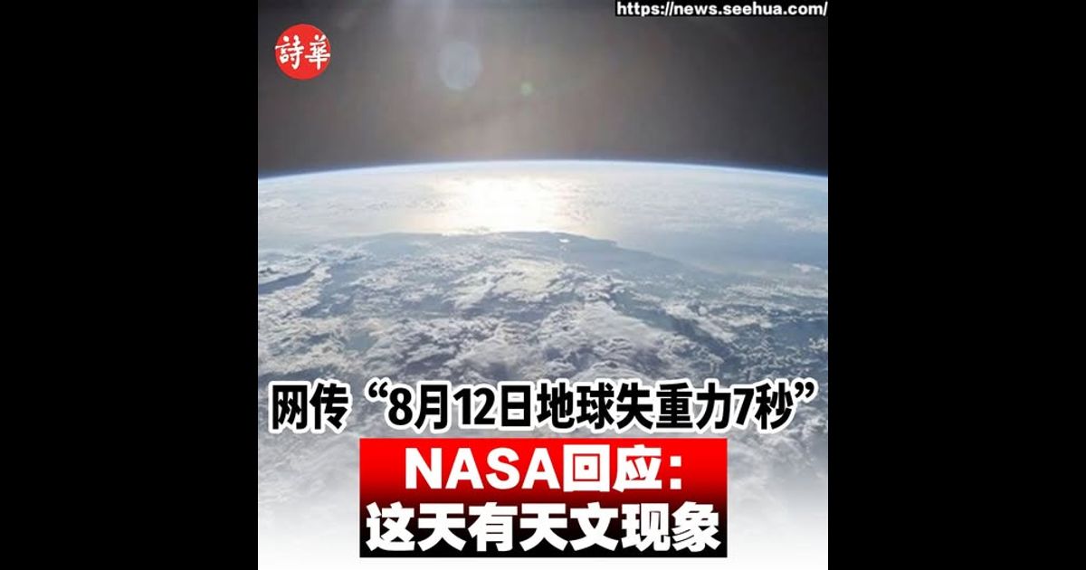网传“8月12日地球失重力7秒” NASA回应:这天有天文现象