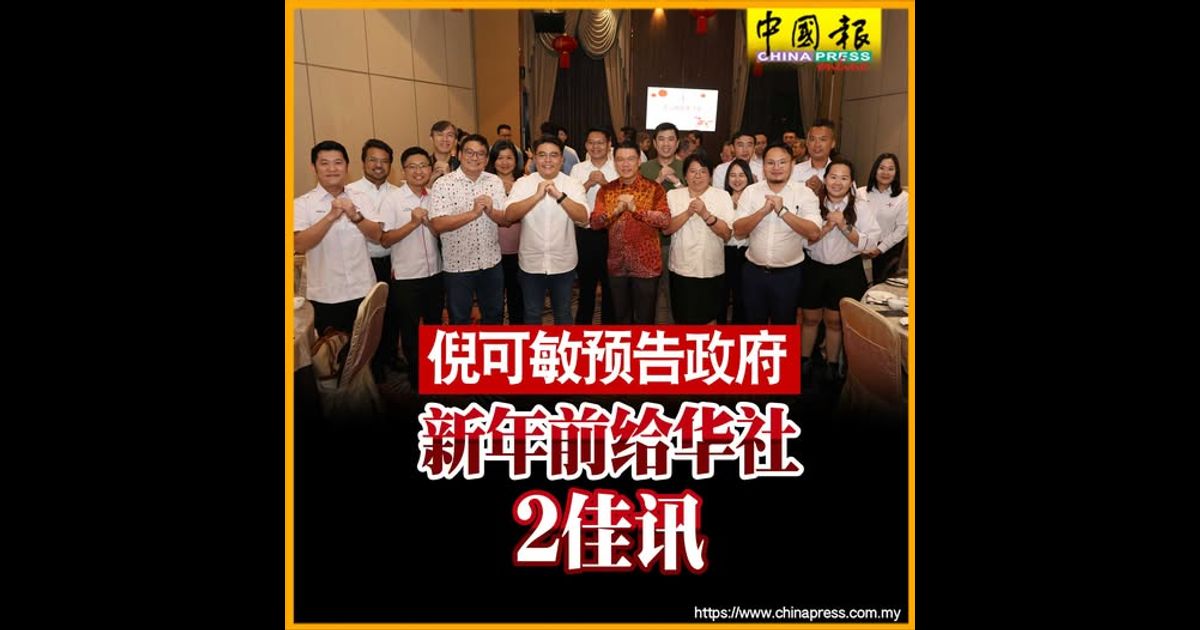 (八打灵再也22日讯)房屋及地方政府部长倪可敏预告,首相拿督斯里安华和行动党秘书长陆兆福,在来临农历新年前,会为华社带来两个好消息。