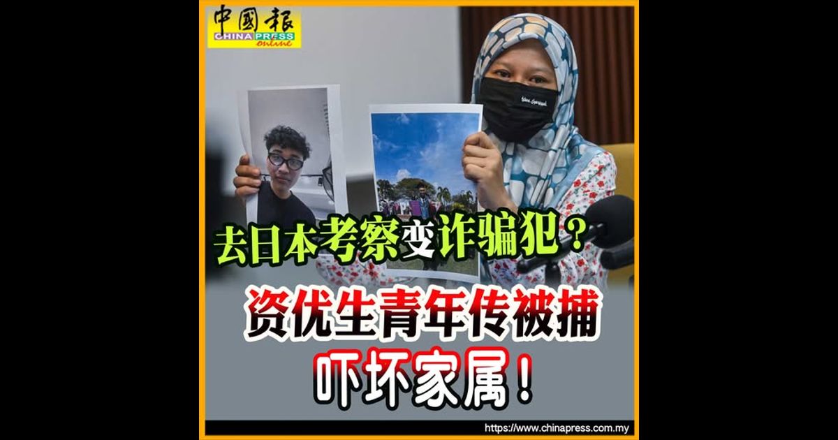 (吉隆坡23日讯)年轻资优生从学院毕业,告知家人要到隆市工作,然而他却在数天后突现身在日本,还告诉家人称“做考察”,此后便失联,直至今早传出他已被日本警方当成诈骗犯逮捕的消息,吓坏了家属!